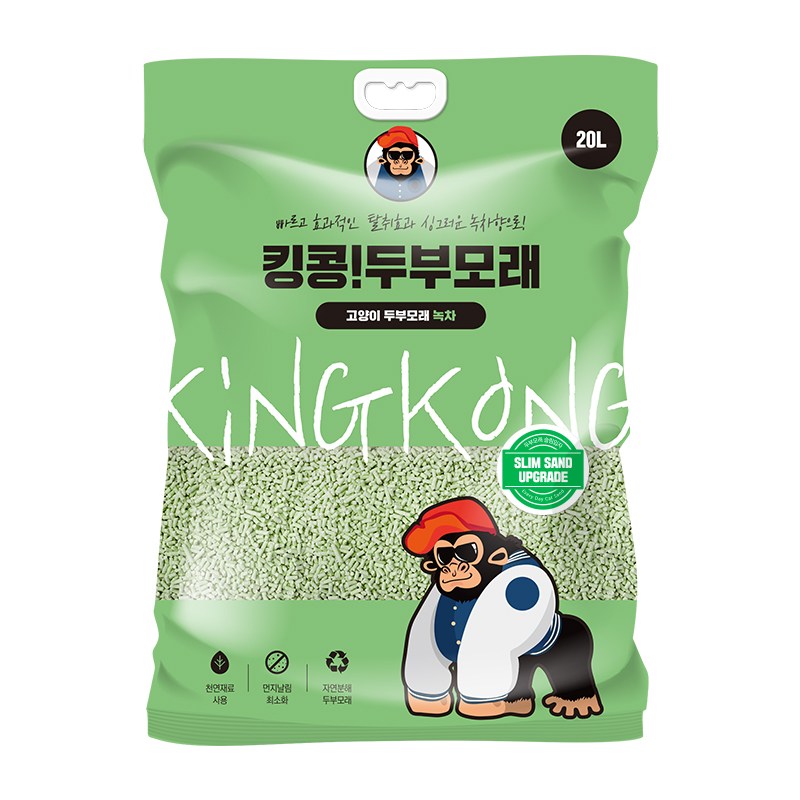 킹콩 두부모래 20L 녹차향 슬림입자 고양이 대용량 화...